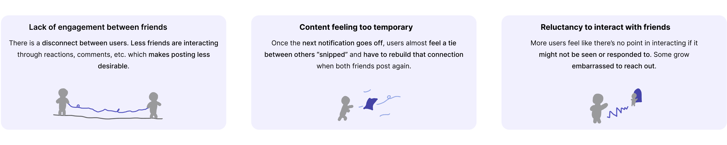 Three main points stood out from surveys and user interviews. With a goal to uncover the root cause of the decrease in engagement, I analyzed user interviews which revealed sentiments of defeat and, interestingly, acceptance.